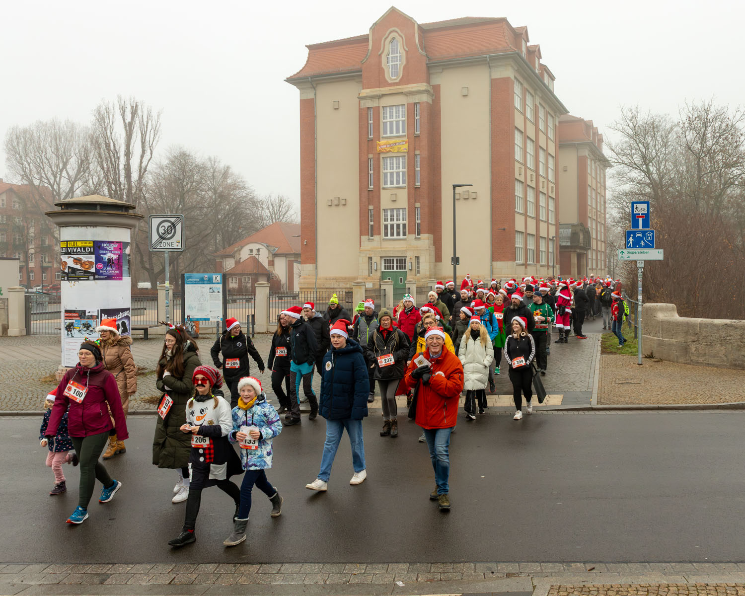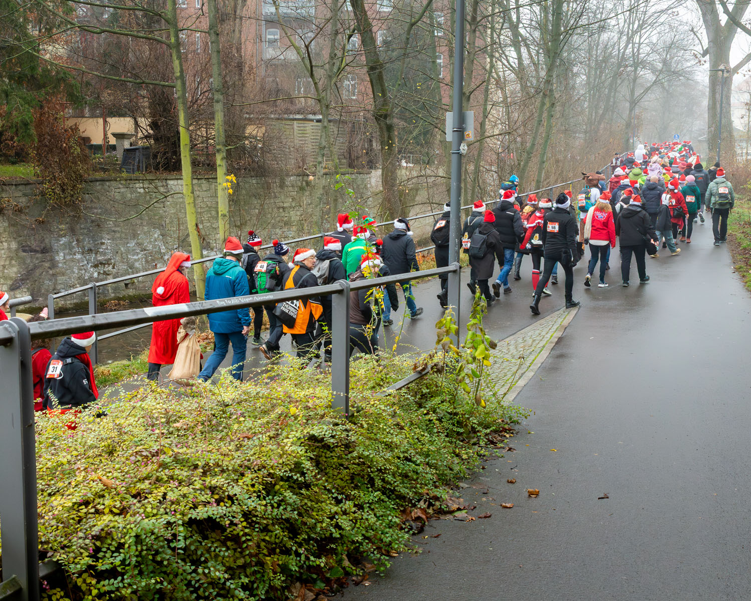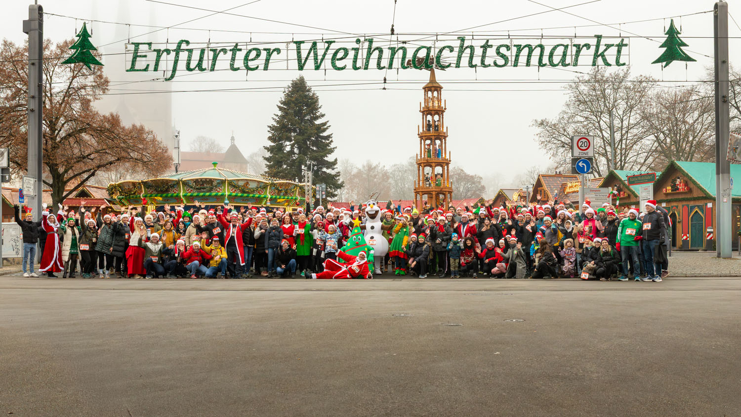 Hier haben wir für euch die schönsten Momente unseres 2. Weihnachtslaufs festgehalten. Von der morgendlichen Versammlung am Thüringen Park über den stimmungsvollen Marsch entlang der Gera bis hin zum großen Finale auf den Erfurter Domstufen.