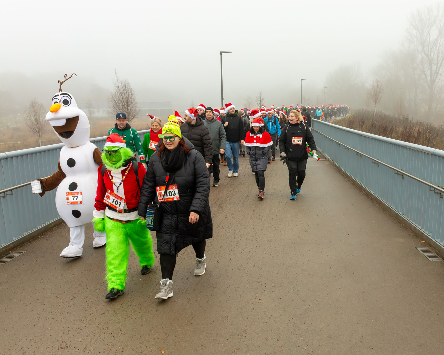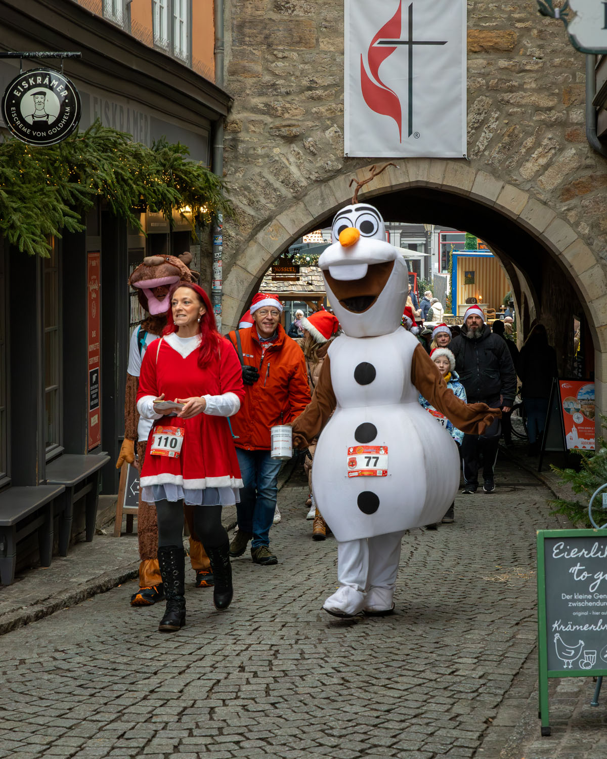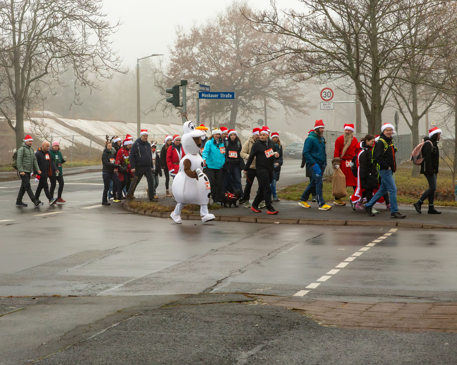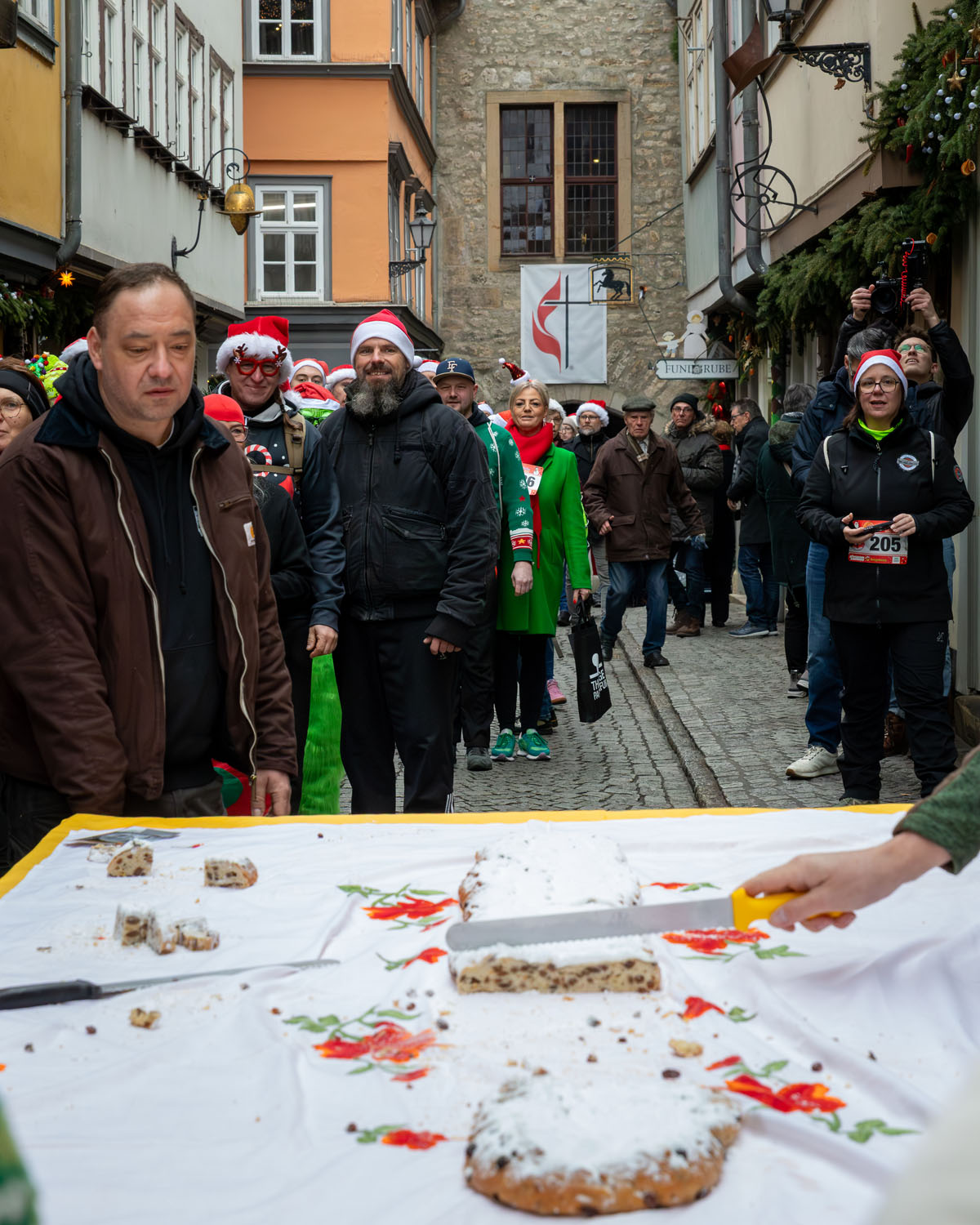 Hier haben wir für euch die schönsten Momente unseres 2. Weihnachtslaufs festgehalten. Von der morgendlichen Versammlung am Thüringen Park über den stimmungsvollen Marsch entlang der Gera bis hin zum großen Finale auf den Erfurter Domstufen.