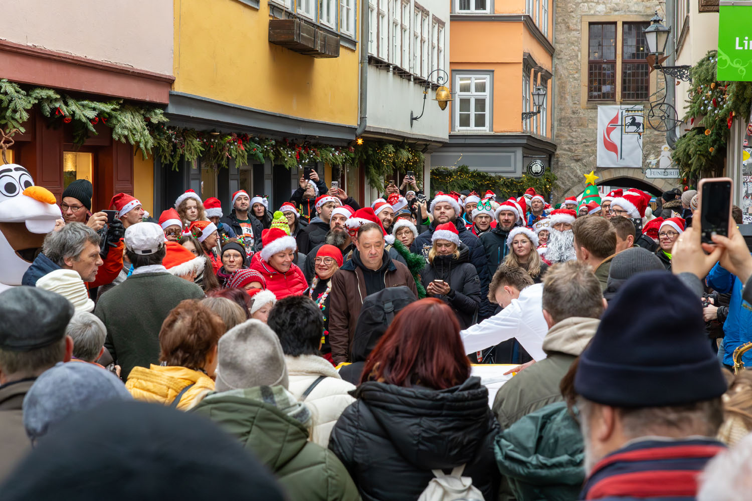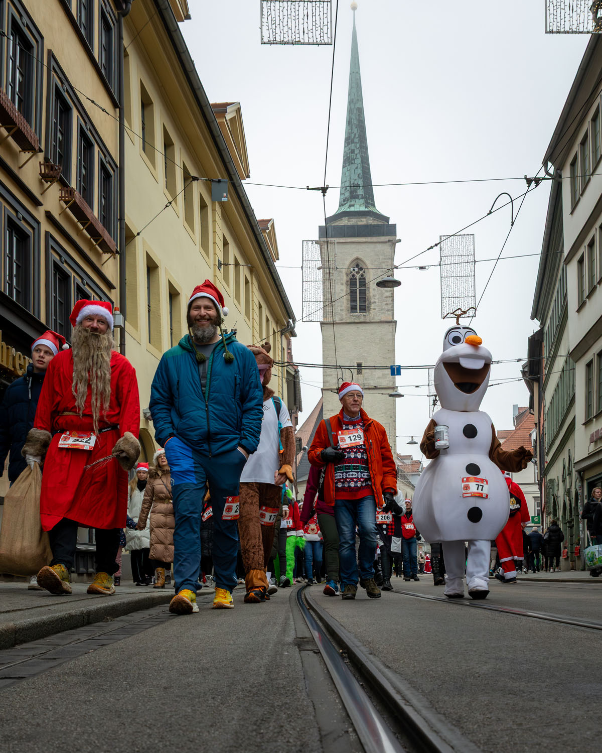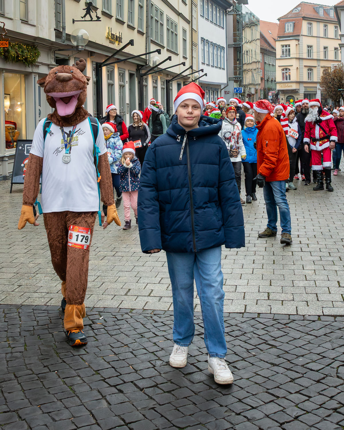 Es war ein beeindruckendes Bild, als sich rund 250 Weihnachtsmänner und -frauen ihren Weg durch Erfurt bahnten. Mittendrin: Erfurts Oberbürgermeister Andreas Horn, der sichtlich Freude daran hatte, Teil dieser besonderen Gemeinschaft zu sein.