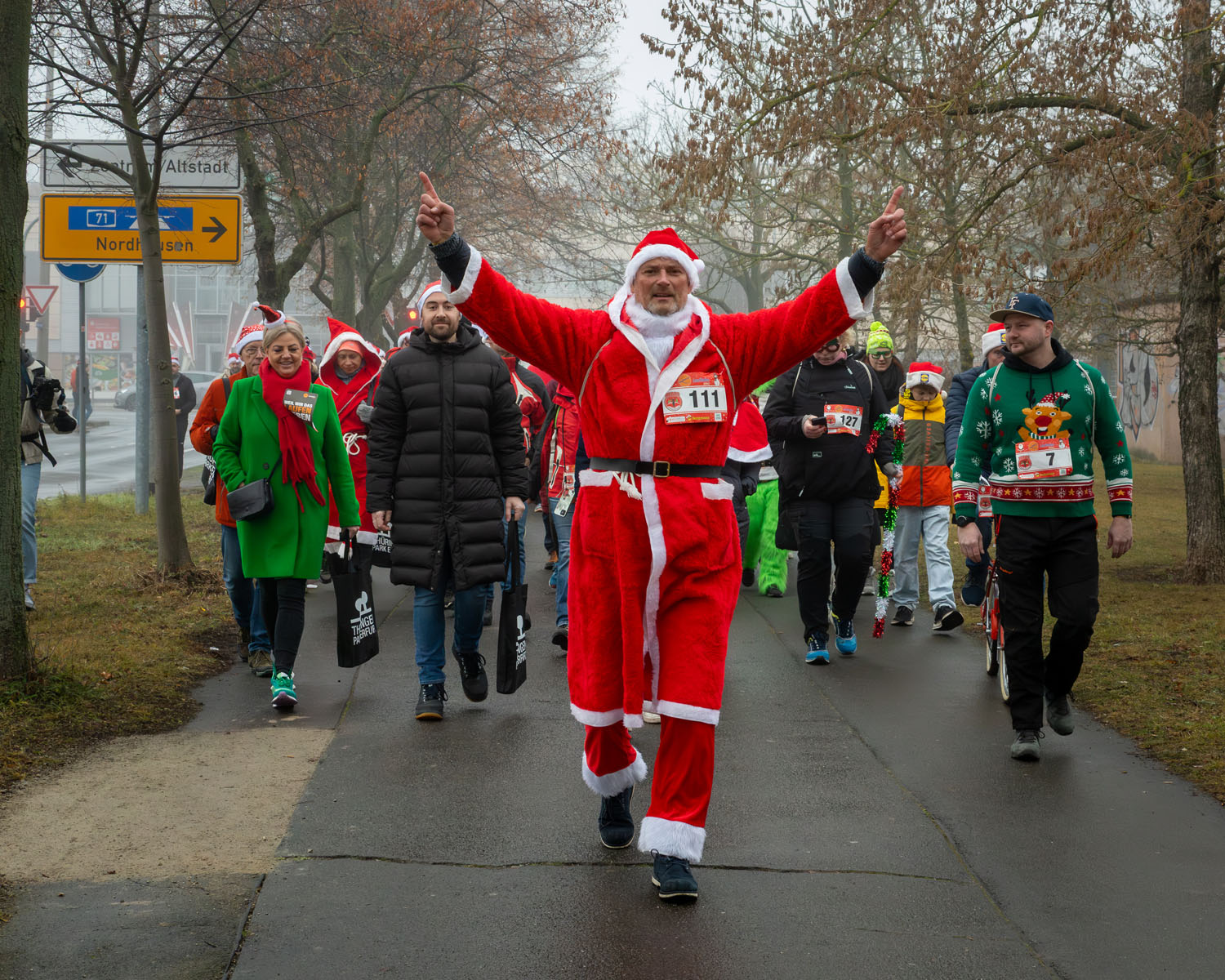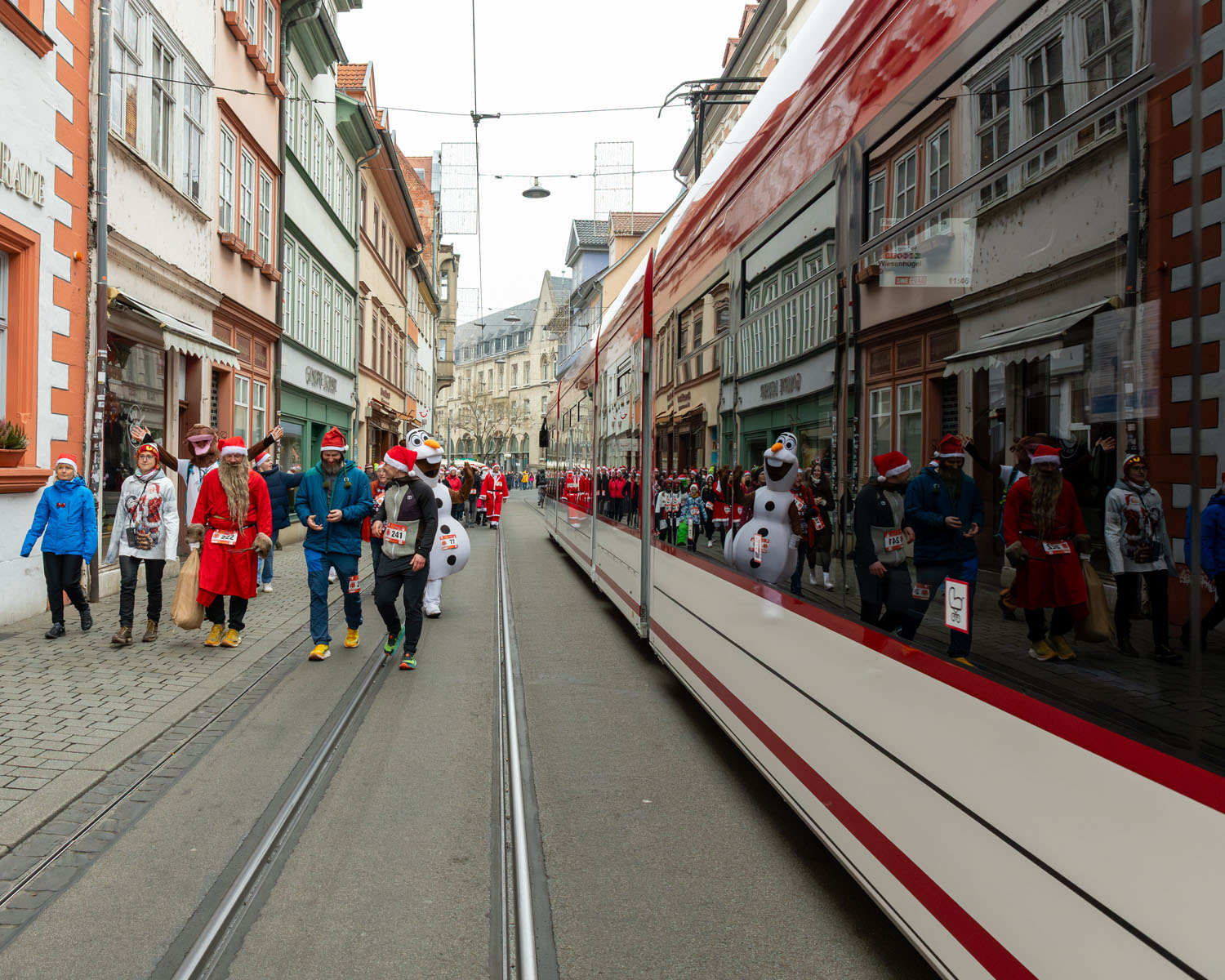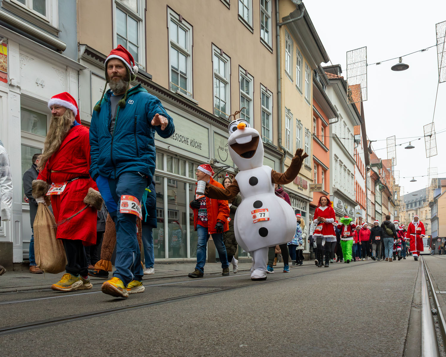Es war ein beeindruckendes Bild, als sich rund 250 Weihnachtsmänner und -frauen ihren Weg durch Erfurt bahnten. Mittendrin: Erfurts Oberbürgermeister Andreas Horn, der sichtlich Freude daran hatte, Teil dieser besonderen Gemeinschaft zu sein.